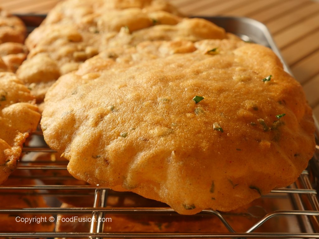 In wok,heat cooking oil and fry puri on medium low flame until golden brown.