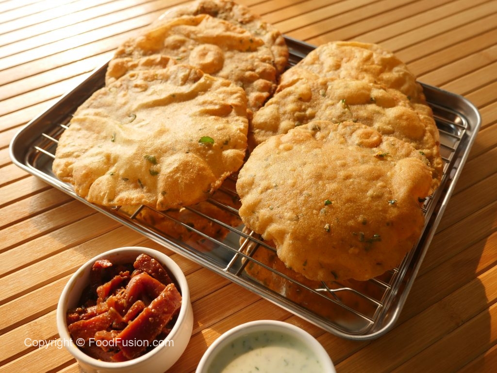 Karhai mein cooking oil garam karein aur puri ko darmiyani halki ancch per golden brown hunay tak fry ker lein.