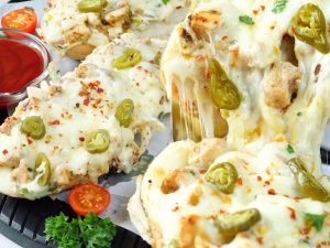 Chicken pieces per knife ki madad sa dono sides per cuts laga lein & side per rakh dein.