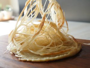 -Grease griddle with cooking oil,place tortilla warps & cook on low flame until golden & crispy,press gently,apply oil with brush then flip & cook other side until golden & crispy (makes 8).