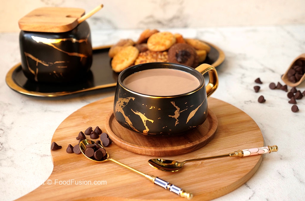 Serving cup mein chococlate tea dal ker serve karein!