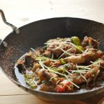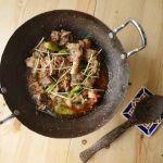 In wok,add mutton with bones,fat and salt.