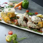-On a serving platter,add grilled vegetables,chicken tikka pieces & grilled corns.