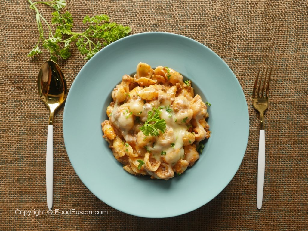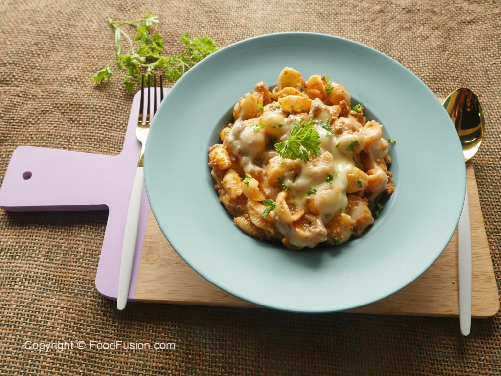 Mozzarella cheese,cheddar cheese aur fresh parsley dal ker dhak dein aur halki ancch per cheese melt hunay tak paka lein (approx. 2-3 minutes).