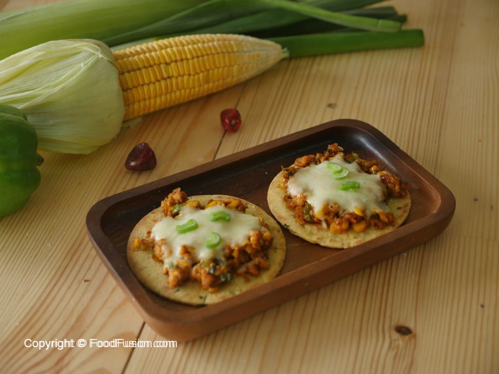 Chulha bund ker dein,tayyar chicken corn filling,mozzarella cheese aur cheddar cheese rakh dein.