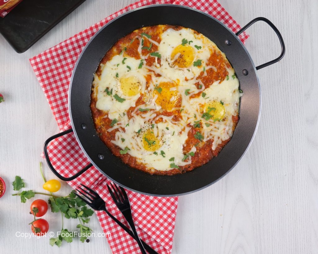 This simple and satisfying recipe of Cheesy Shakshuka is packed full of the yummy and cheesy flavour of Olper’s Cheese that you can easily make at home for your family. #OlpersCheese #1Glass1Slice #ToastKaNayaFriend #BreakfastKiJaan #FoodFusion #HappyCookingToYou #Breakfast #Shakshuka #SehriSpecial