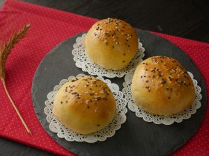 With the help of the brush,apply egg on prepared buns and sprinkle sesame seeds.