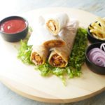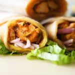 Paratha per tomato ketchup,pyaz soaked in lemon juice aur cooked chicken dal ker wrap ker lein & serve karein.