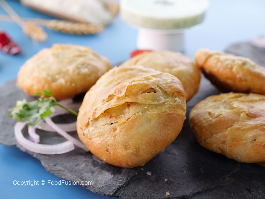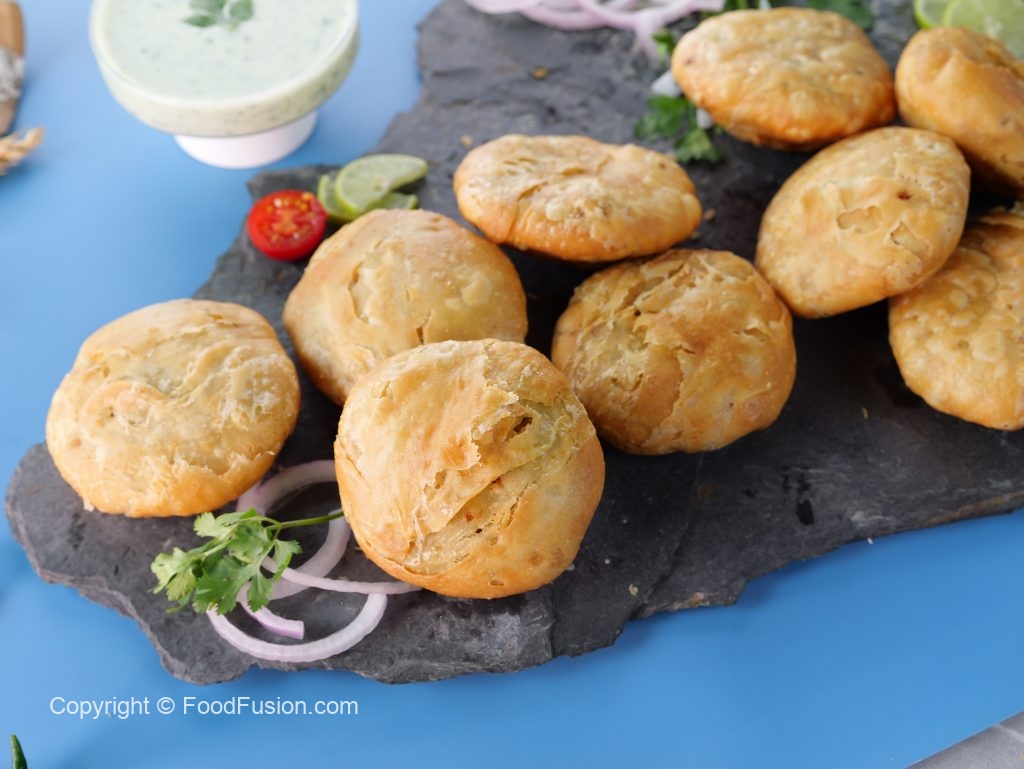 -In a wok,heat cooking oil (100°C) & fry stuffed kachoris on very low flame until golden & crispy (makes 12) & serve!