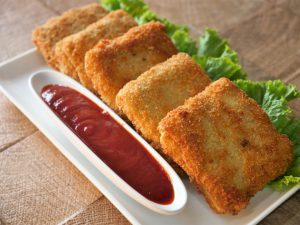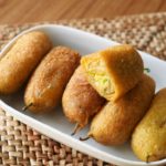 In green chilies,add masala mix or mozzarella cheese with masala mix,coat with potato coating then dip into pakora batter.