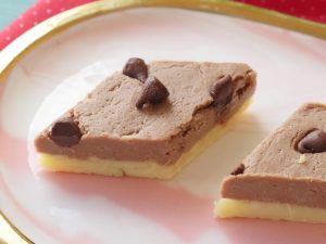 On milk barfi mixture,add & spread chocolate barfi mixture.