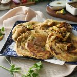 Apply butter and sprinkle fresh coriander & serve with raita!