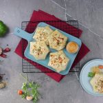 -Grease griddle with cooking oil,place stuffed crepes,sprinkle dried oregano,red chilli crushed,cover & cook on low flame until cheese melts (1-2 minutes).