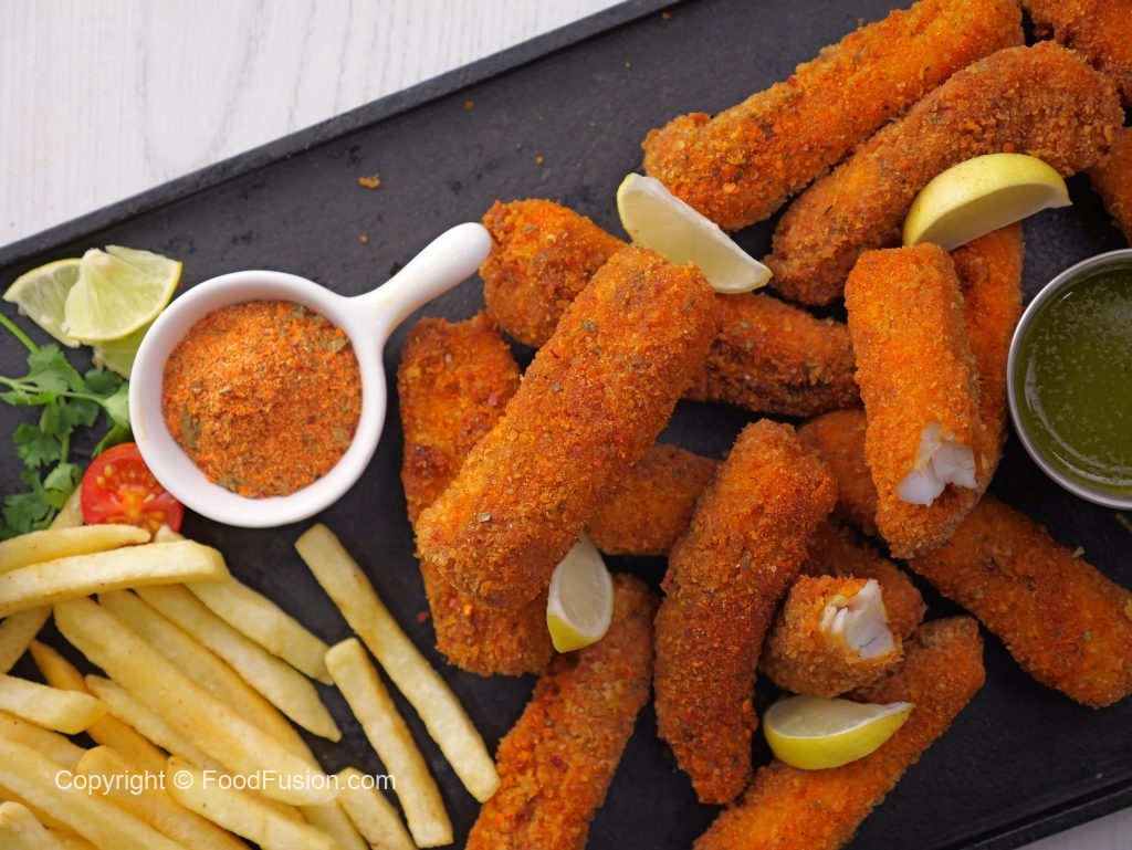 -Ek bowl mein king fish,tayyar spice mix (1-2 tbs baad ke liye rakh lein), lemon juice daal kar mix karein aur 10 minutes ke liye marinate karein.