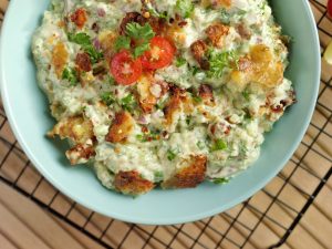 -Crush air fried potatoes,add in salad bowl & give it a good mix.