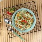 -Spray cooking oil & air fry at 170°C until potatoes are crispy (18-20 minutes),turn sides in between & set aside.