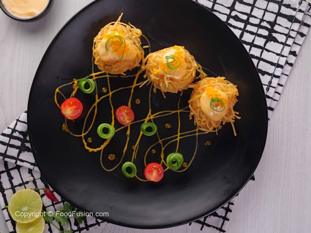 -In a wok,heat cooking oil & fry on medium flame until golden & crispy (makes 6).