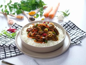 -Boneless beef preferably undercut cut in slices 500g with 15% fat