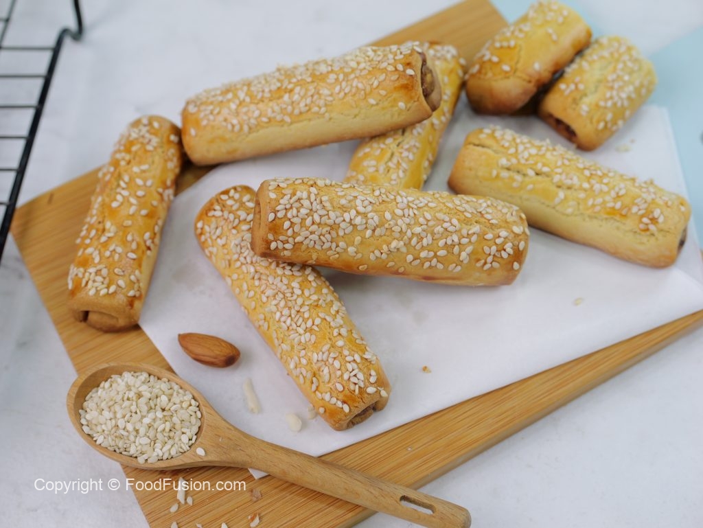 -Place rolled date filling on the dough,roll the dough slightly & seal the edges then cut the dough into 3” finger cookie.