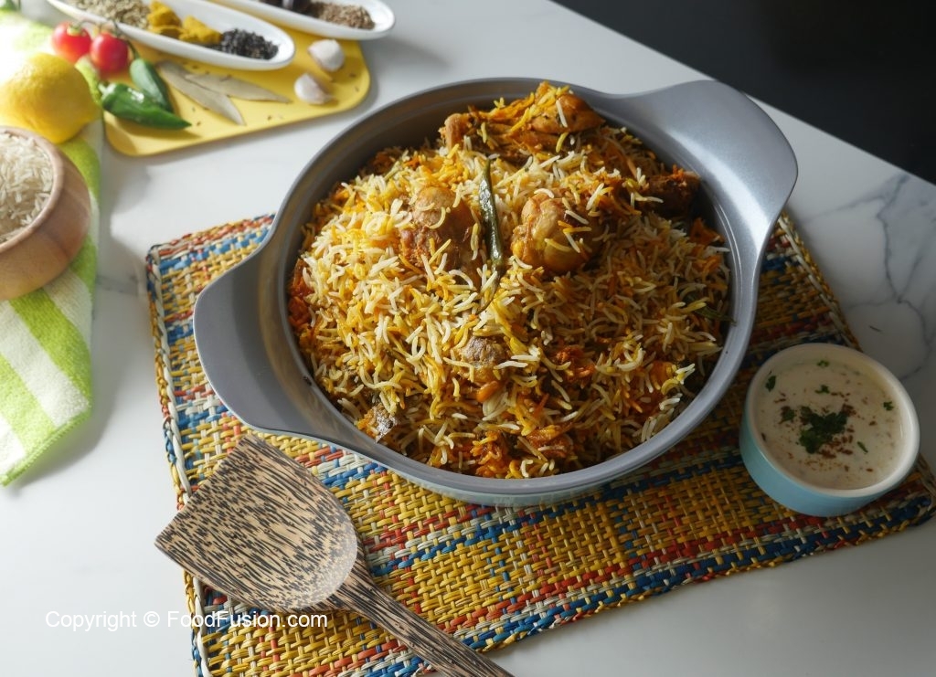 Fried pyaz,tayyar dahi,boiled chawal ki half quantity,reserved tayyar spice mix,baqi bachay hoye chawa aur cooking oil dal ker dhak dein aur halki ancch per 18-20 minutes kliya steam cook ker lein & serve karein!