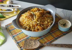 Add fried onion,prepared yogurt,half quantity of boiled rice,reserved prepared spice mix,remaining boiled rice,cooking oil,cover & steam cook on low flame for 18-20 minutes & serve!