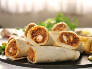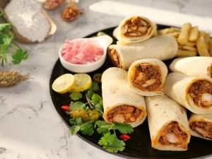 -On shawarma bread,add & spread mayonnaise,add cooked chicken & roll up.