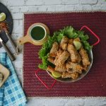 Add egg,all-purpose flour,cornflour,chicken powder,sesame seeds,vinegar & mix well.