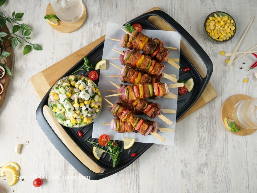 Do Try these Fajita Skewers with Corn Feta Salad #HappyCookingToyou #FoodFusion #7up