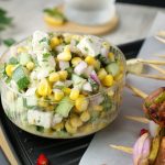 -In a bowl,add corn kernels,cucumber,onion,pickled jalapenos,fresh parsley,feta cheese & mix well.