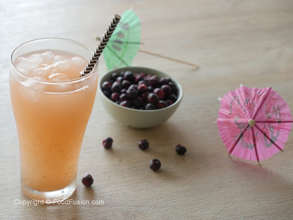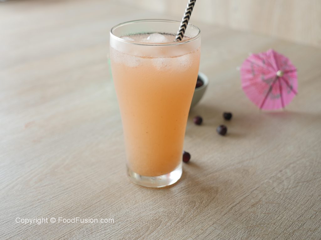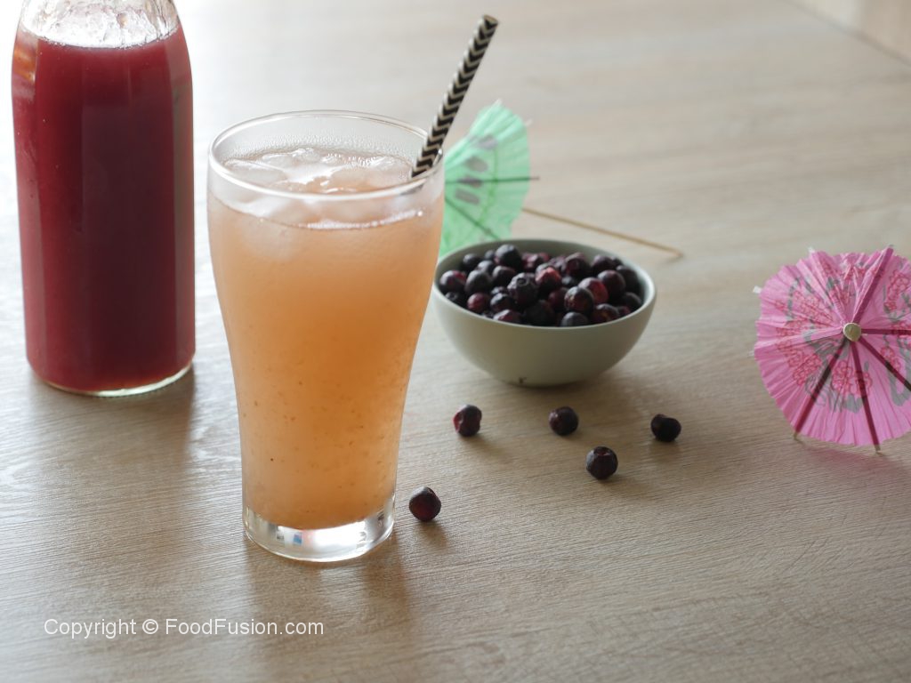 In serving glass,add grewia syrup,ice cubes and water.