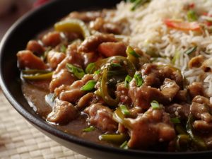 -Fried rice ko Chicken Mongolian ka saath serve karein.