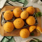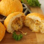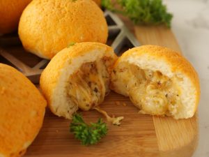 -Pump out the garlic butter topping in circles on top of the buns (makes 16-18).