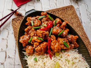 In a wok,heat cooking oil and fry marinated chicken on medium flame for 2-3 minutes & take out from oil & rest for 3 minutes.
