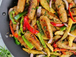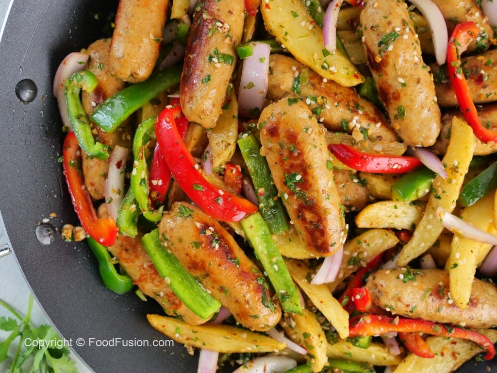-Red bell pepper,Shimla mirch,pyaz,fried aloo aur fried kababs dal ker ache tarhan mix ker lein.