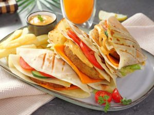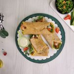 -Transfer it to a flat surface,add salad leaves,cooked chicken,onion,tomato,greek yogurt sauce & wrap it (makes 2-3).