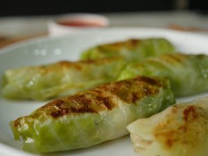 In frying pan,add olive oil and fry cabbage wraps from both sides until golden brown.