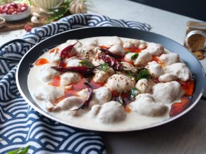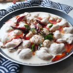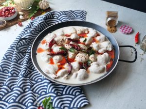 -In a serving dish,add prepared baray & pour prepared yogurt.