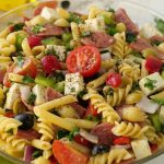 -Add red bell pepper,cucumber,black olives,green olives,cherry tomatoes,capsicum,beef pepperoni, onion,cottage cheese,fresh parsley and toss well.