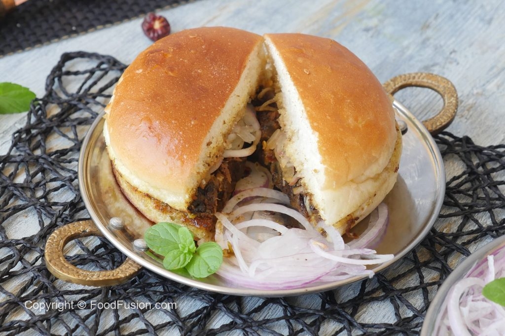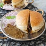 Serve kaleji bun kabab with onion and bun kabab chutney.