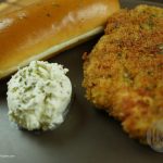 Finally coat the chicken fillet in breadcrumbs that consists of dried parsley and garlic powder.