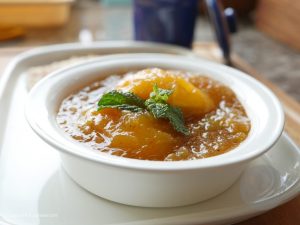 In raw mango pulp,add sugar,red chili powder,salt and water,mix well until sugar is dissolved.