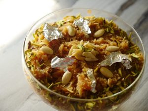 Badam aur chandi ka warq sa garnish ker ka serve karein.