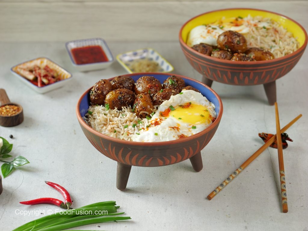 -Serving bowl mein korean rice,korean potatoes & fried egg dal dein.