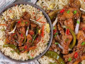 -Boiled chawal,soy sauce,sirka,til,til ka tel aur hara pyaz leaves dal ker ache tarhan mix ker lein aur halki ancch per ek minute kliya paka lein.