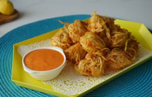 Sprinkle chaat masala & serve with dip.