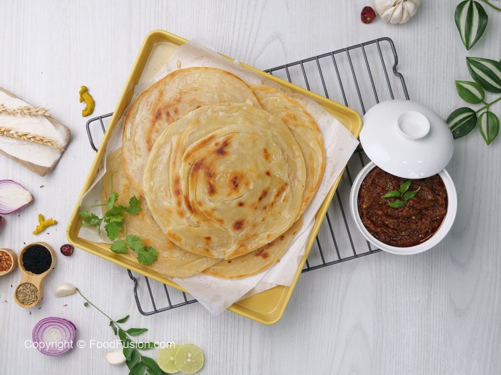 -Heat griddle & fry paratha on medium flame from both sides with clarified butter.