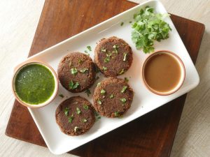 Grease your hands with oil,take a mixture and make kababs of equal sizes (makes 16).