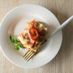 Lasagna sheets per white sauce aur red sauce with mince dal ker pheela lein aur roll ker lein.