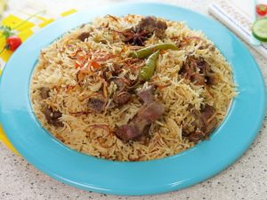 In prepared biryani marinade,add beef and mix well,cover & marinate for 1 hour.