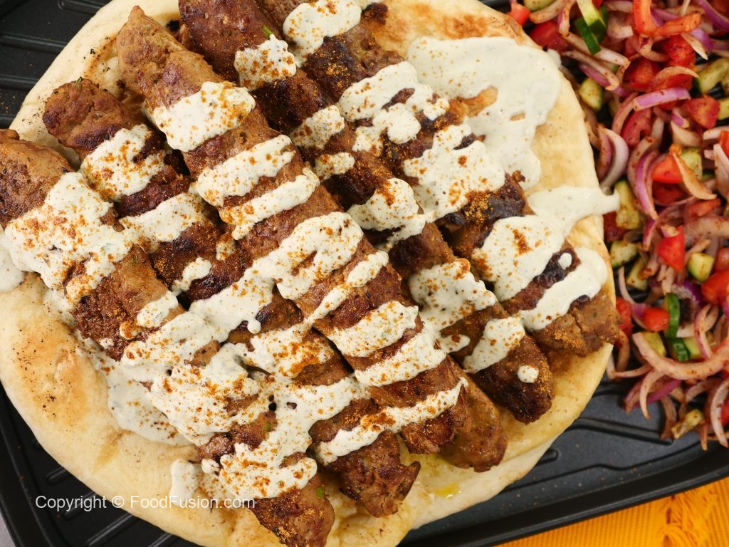 -On toasted naan,place kababs,drizzle prepared sauce & sprinkle chaat masala.